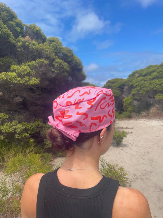 Pink & Red Wave Print Cotton Twill Scrub Cap™