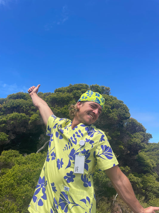Blue & Lime™ Hawaiian Print™ Nursing Scrub Pants