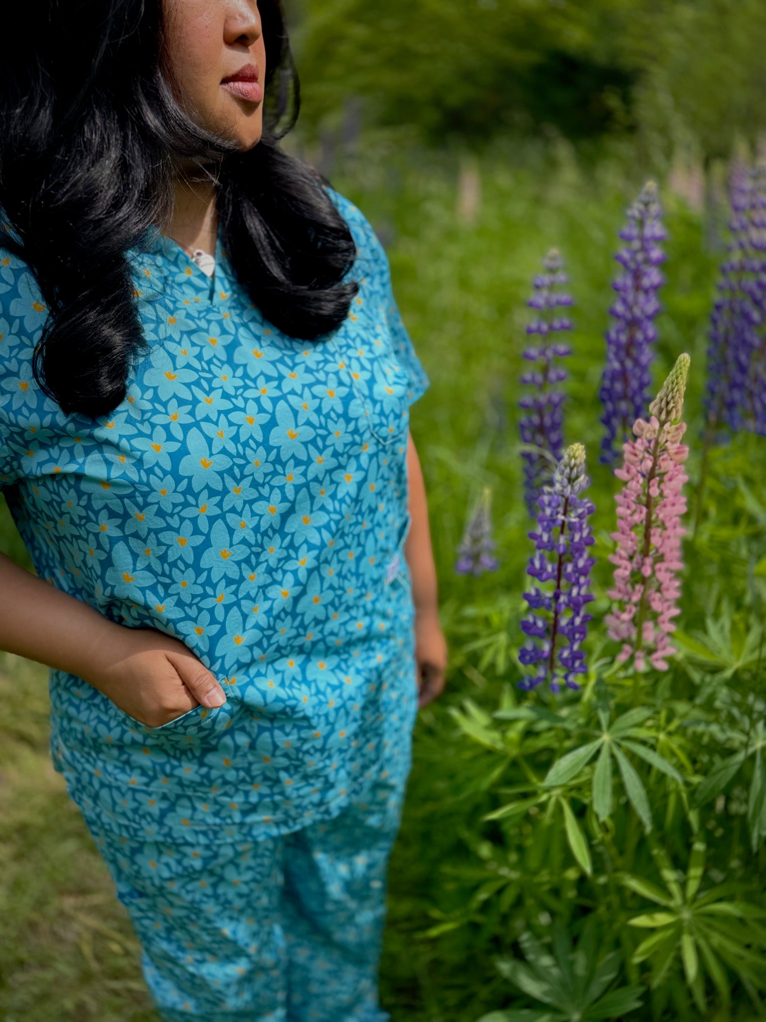 Limited Edition Baby Sister Blue™ Print Nursing Scrub Pants